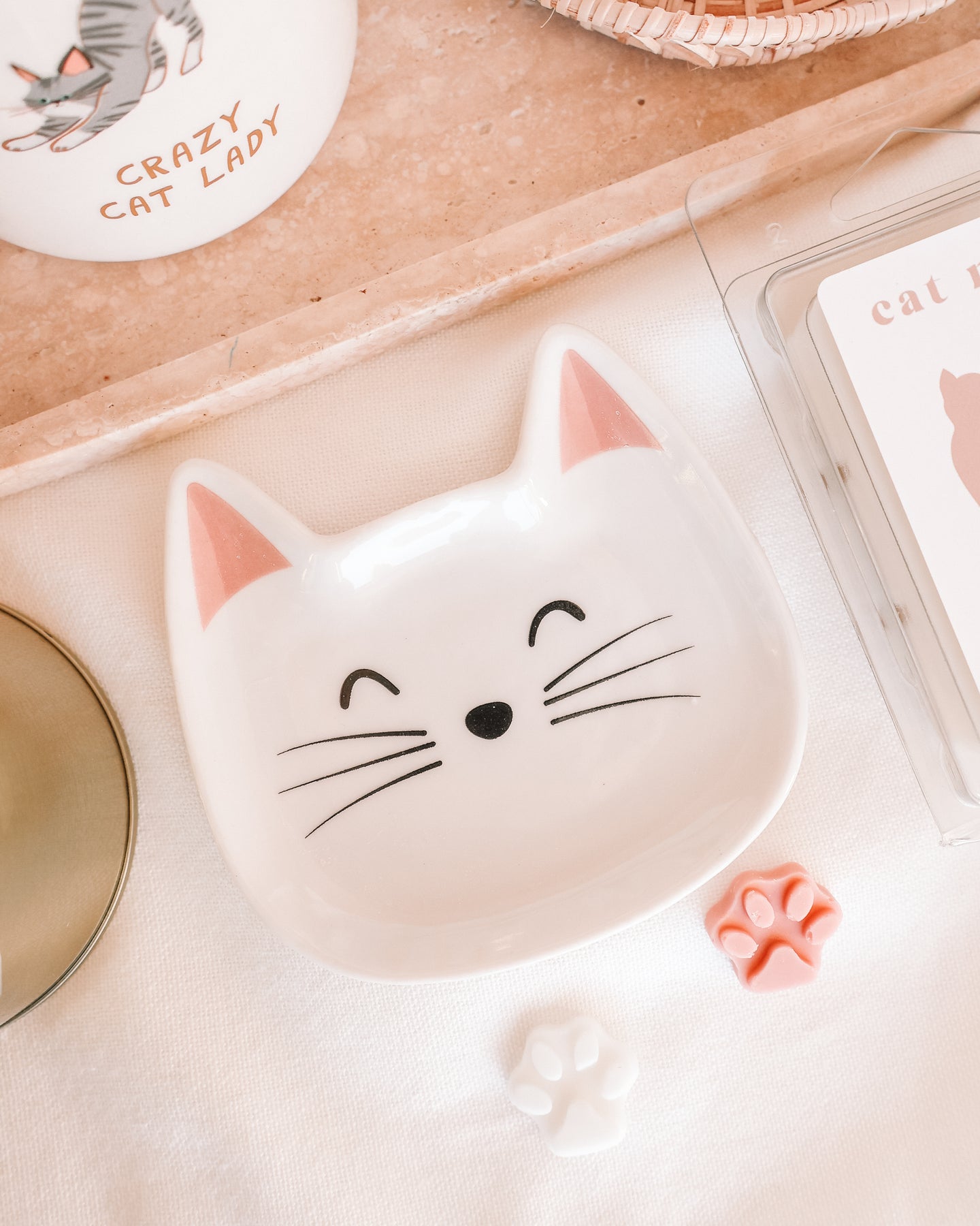 Keep rings, earrings, and other little treasures safe in this adorable cat face-shaped trinket dish. Ideal for bedside tables or dressing areas.