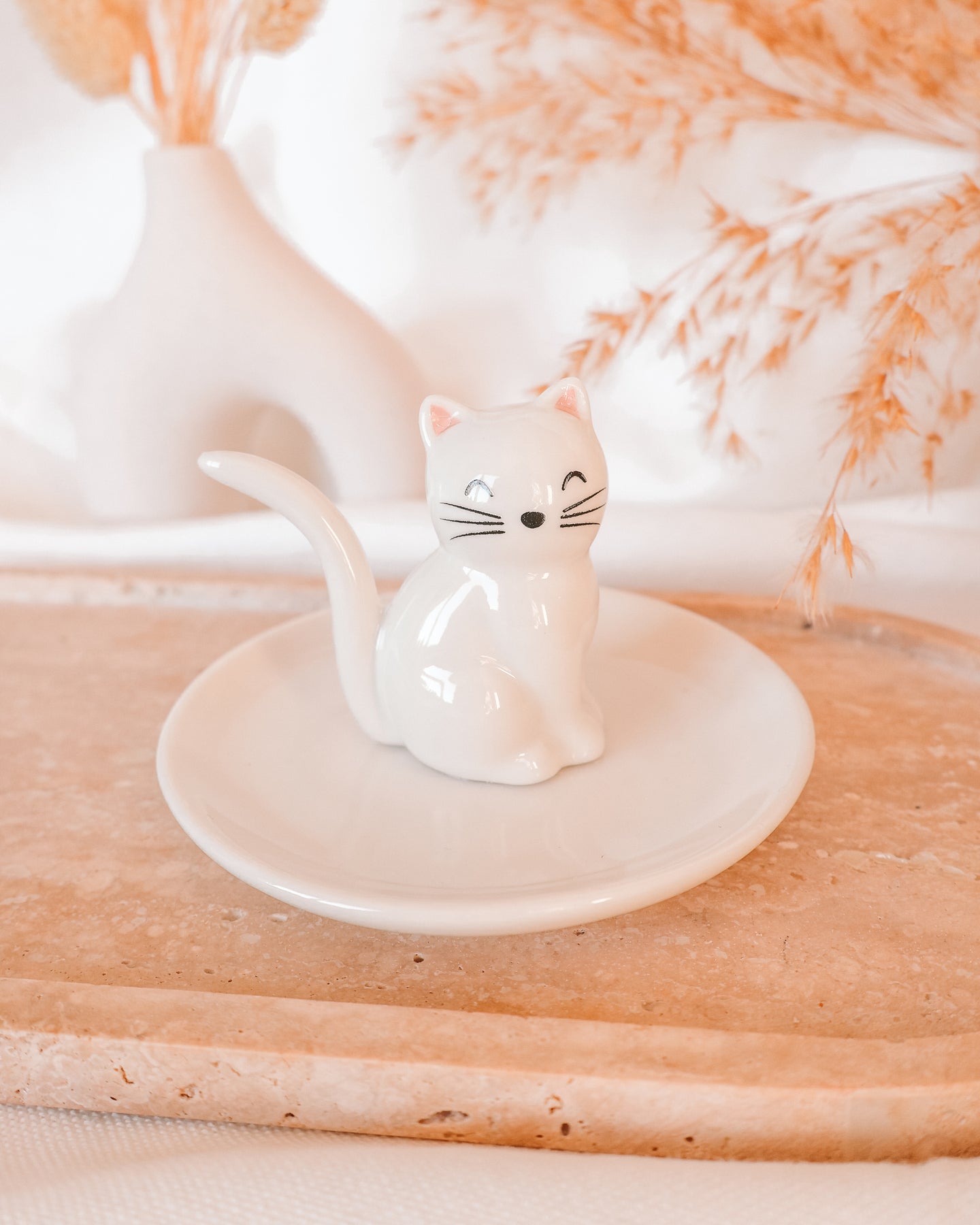 This sitting cat trinket dish is both functional and cute, with its raised tail designed to hold rings and small jewellery. A practical and purr-fectly adorable decor piece.