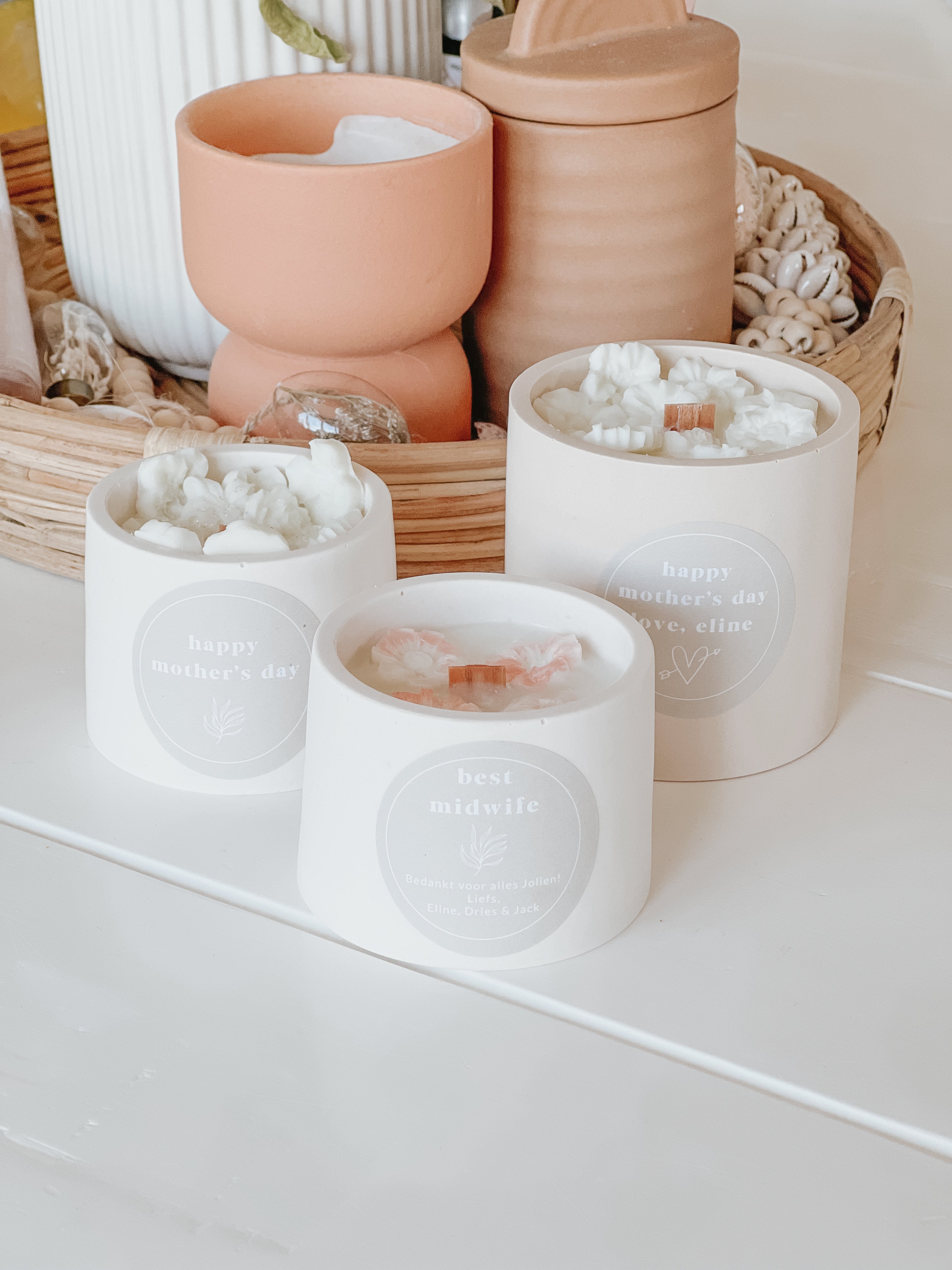 Everything can be discussed: the amount of candles, the scent, the type of vessels, labels, toppings,...